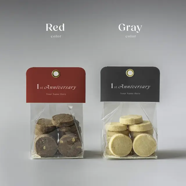 ご指定の周年記念と名入れを印字させていただきます。