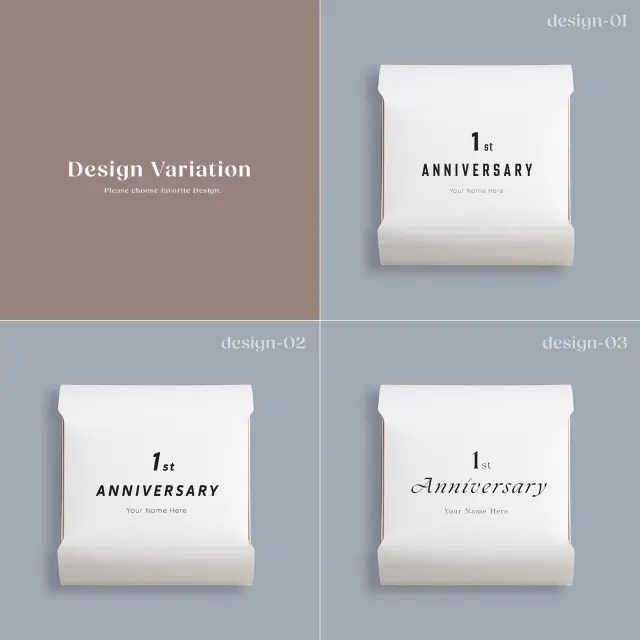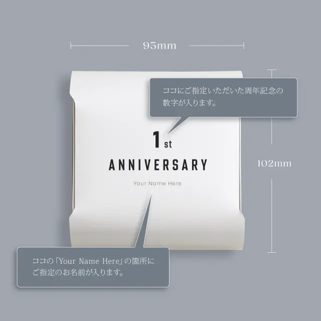 ご指定の周年記念と名入れを印字させていただきます。