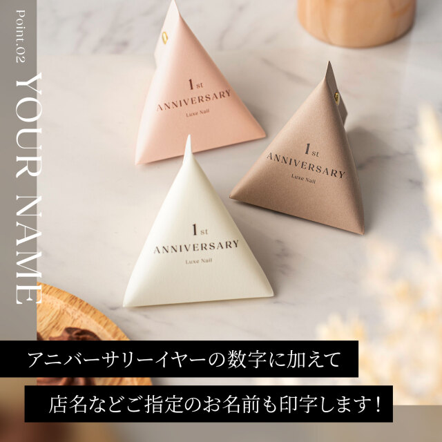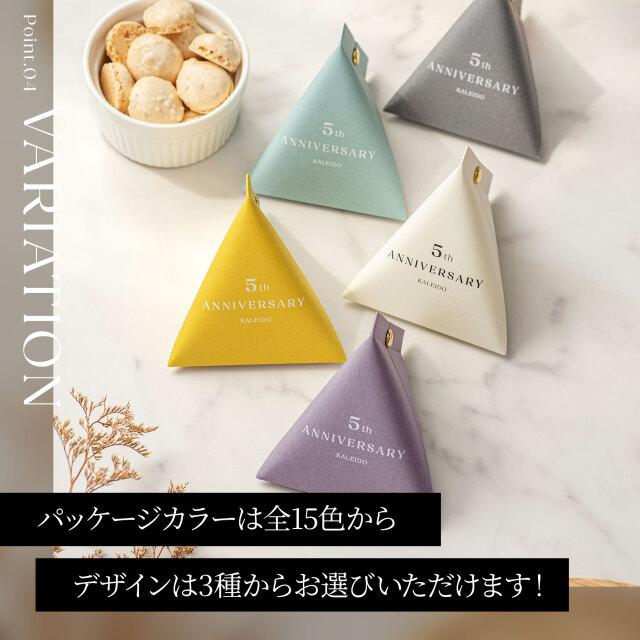 テトラパッケージにはお選びいただいた「◯th Anniversary」とご入力いただいたお名前を印字して製作します。印字する名前は日本語・英語どちらでも問題ありません。文字数制限もありませんが、あまりに文字数の多い場合は改行して2行で印字する場合もあります。尚、名入れが不要な場合は「印字不要」とご入力ください。