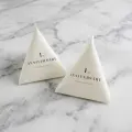 注文数1につき48枚のテトラパッケージと口を留める割りピンが入っています。組立後のテトラプチギフトのパッケージサイズは下図の通りとなります。