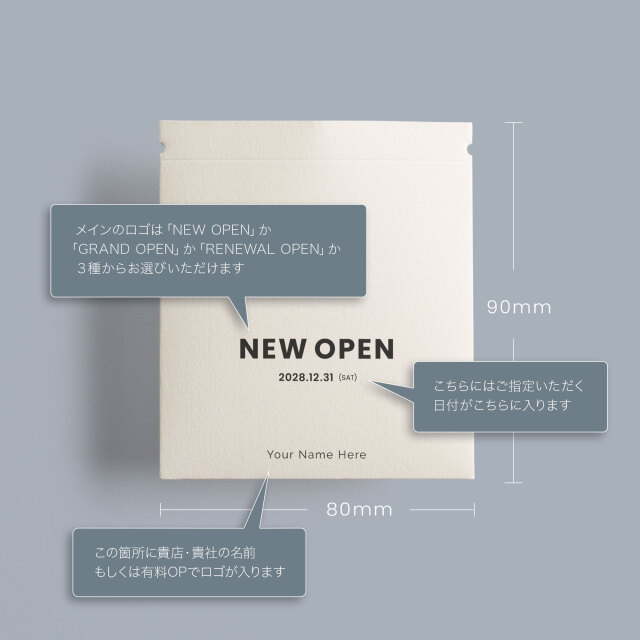 3種類から選べる「OPENロゴ」と共に