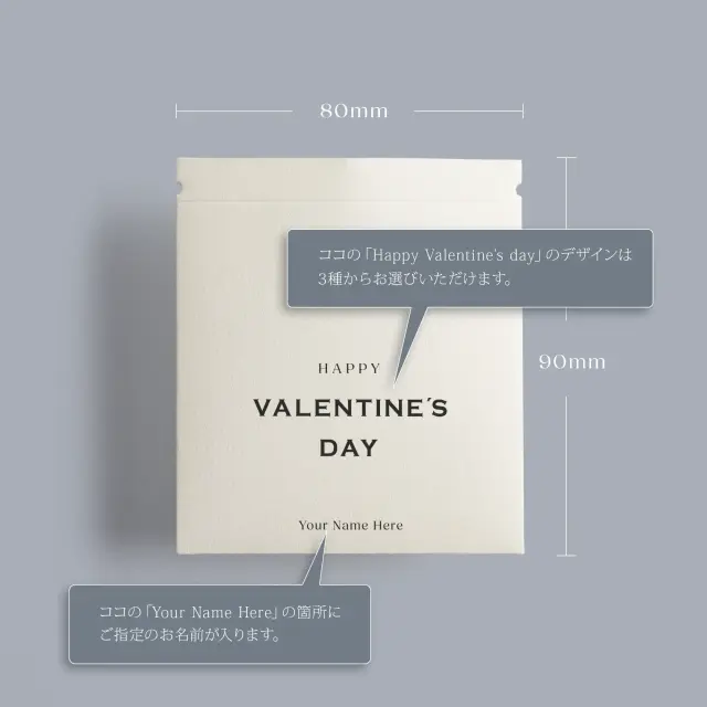 テトラパッケージにはお選びいただいた文字デザインで、ご入力いただいたお名前を画像の「Your Name Here」の箇所に印字して製作します。印字する名前は日本語・英語どちらでも問題ありません。文字数制限もありませんが、あまりに文字数の多い場合は改行して2行で印字する場合もあります。尚、こちらの商品はご注文後の 仕上がり確認はありません。仕上がり確認をご希望の場合はご注文前にこちらよりご注文前にお申し込みください。