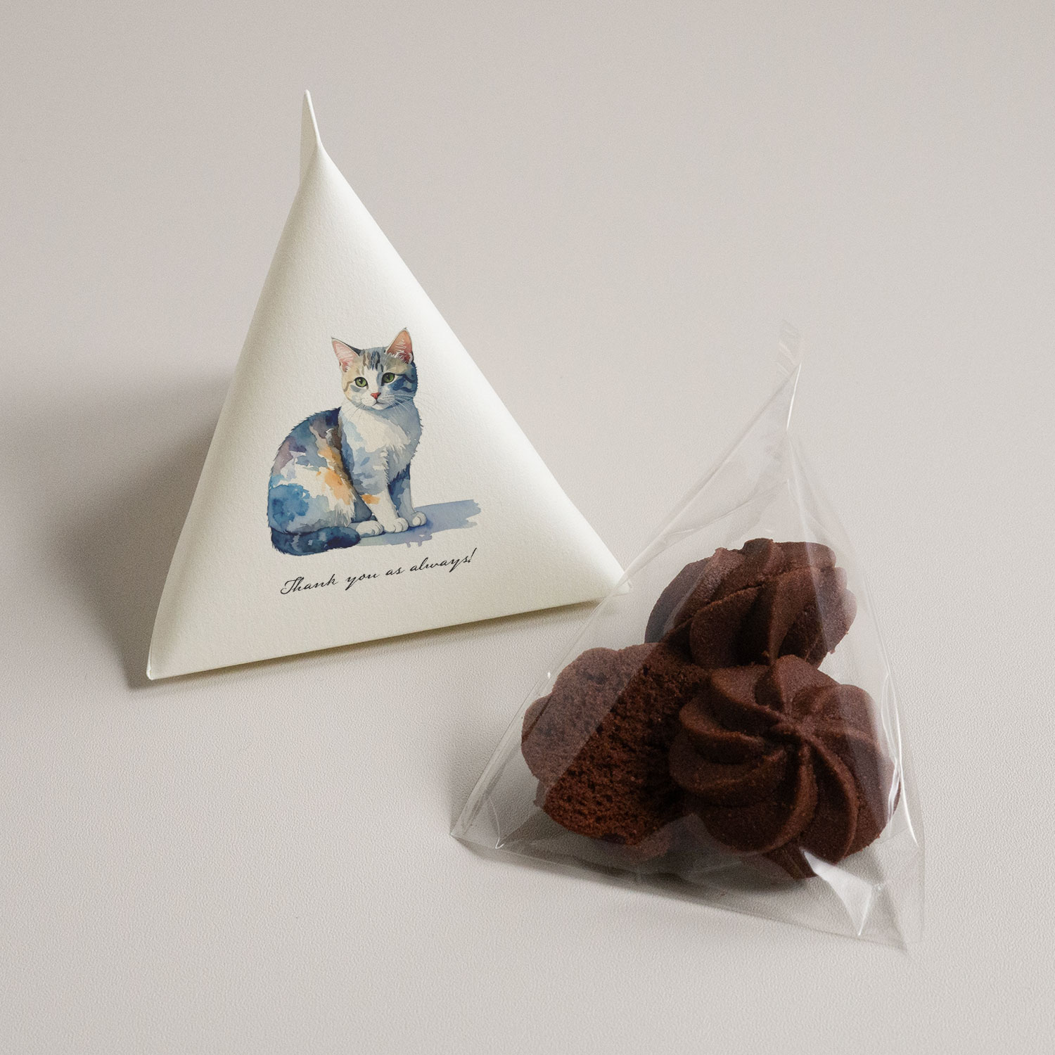 ご指定のロゴ入りテトラプチギフト(お菓子入り)の詰め合わせギフトボックスとなります。